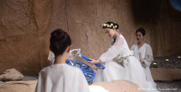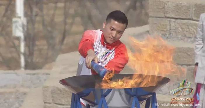 首先,由二青会圣女在一线天洞内采集火种,这正是模仿了西侯度祖先的生活方式,以此表达对先人崇高的敬意。接着,中国艺术体操运动员张豆豆高举采火棒,在6名圣火少女的陪同下,从采火台上缓缓走到火种盆台前,拿着手中的采火棒对着凹面镜进行采火。采火器中火苗渐起,圣火少女手中的采火棒顺利点燃。最后,圣火少女用手中的采火棒引燃火种盆。至此,备受瞩目的二青会进入倒计时阶段,山西正式进入“二青会时间”。