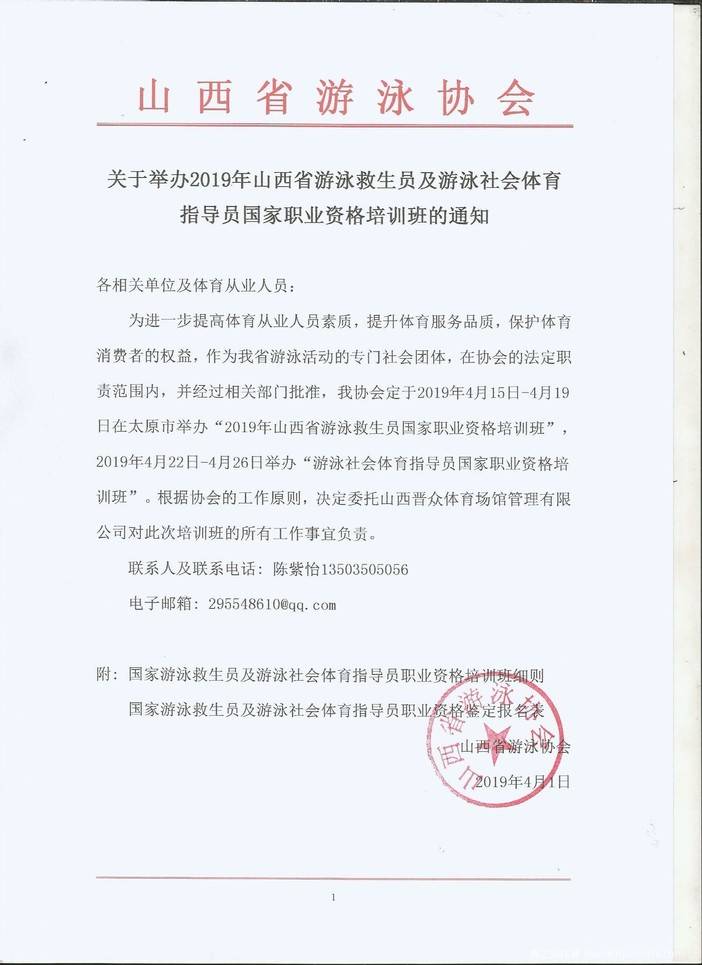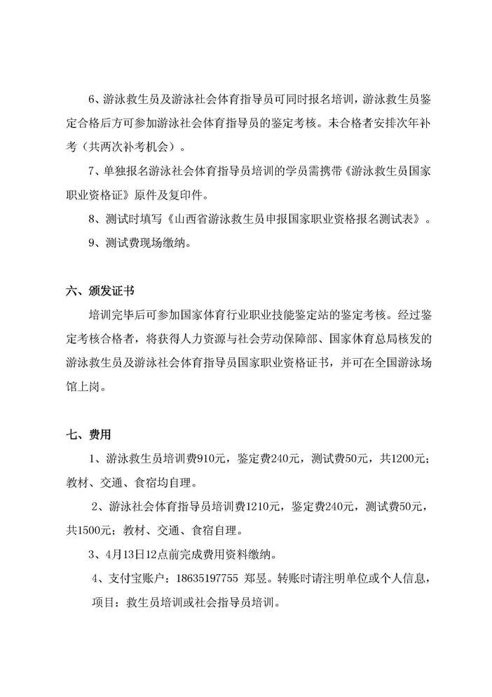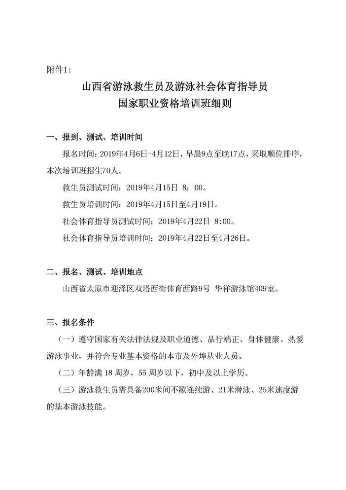 山西省游泳救生员及游泳社会体育指导员国家职业资格培训班