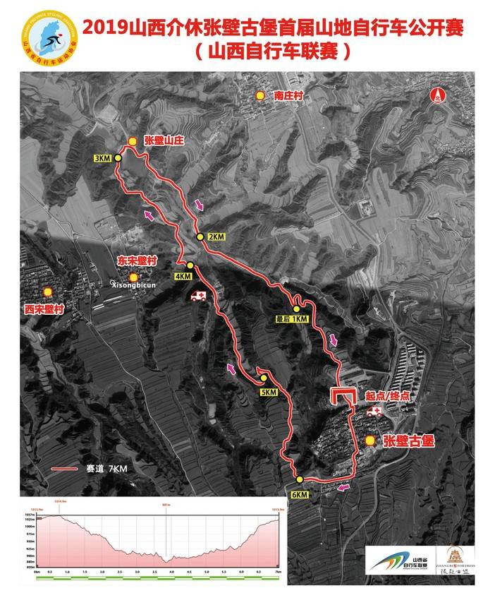 首届张壁古堡自行车公开赛选取一条全长7公里的山地自行车环形赛道。本条赛道连接张壁古堡核心景区和休闲度假区,山川水色,累计爬升194米,是一条优质山地自行车比赛路线。