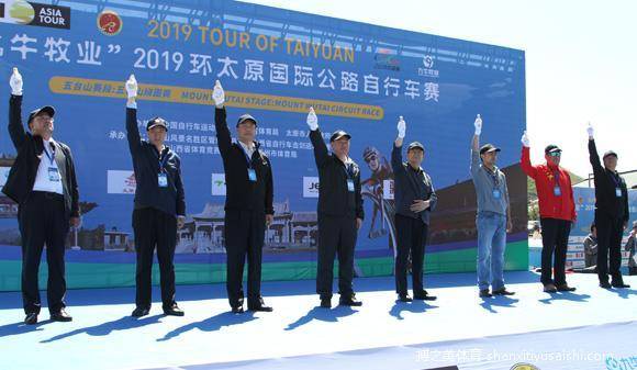 5月28日,“九牛牧业”2019环太原国际公路自行车赛五台山赛段开赛,中国自行车运动协会副秘书长熊鑫,山西省体育局副巡视员程中平,忻州市委常委、五台山风景名胜区党工委书记、管委会主任赵新年,忻州市副市长安书田等鸣枪发令或颁奖。