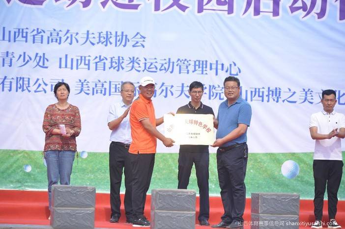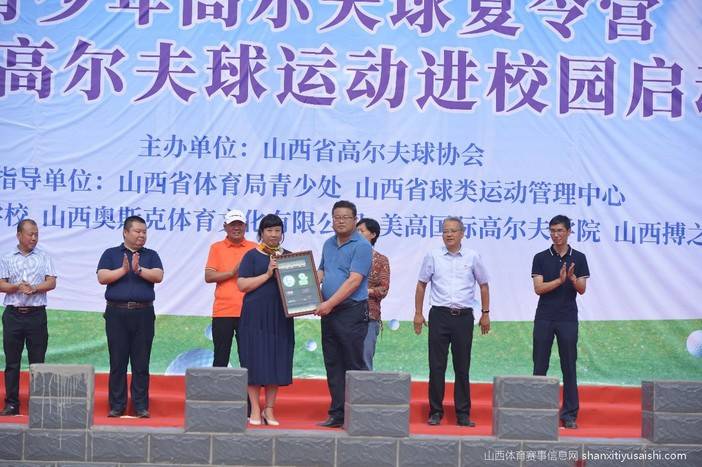 6月24日,山西省高尔夫球运动进校园启动仪式在太原高新双语小学校举行。来自教育界、新闻界以及高尔夫球界的与会嘉宾,共同见证了此次活动,观摩了太原高新双语小学校高尔夫球校队队员们的汇报展示。山西省高尔夫球协会授予太原高新双语小学校为“山西高尔夫特色学校”。美高国际高尔夫学院向太原高新双语小学校赠送了建设高尔夫教学场地所需草坪。