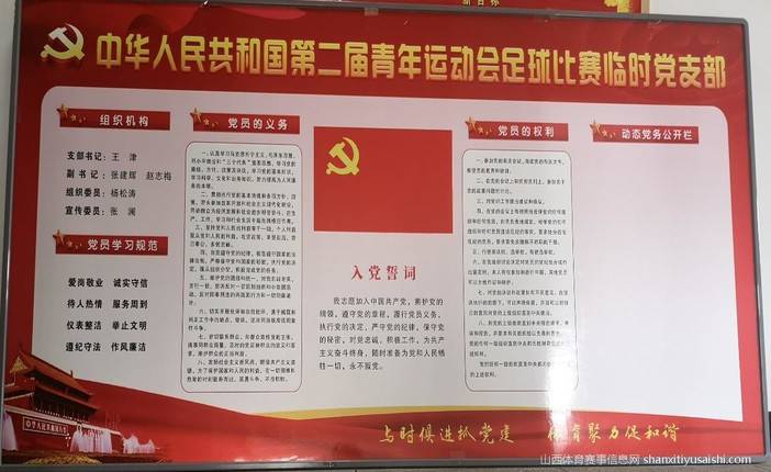 8月7日晚20:00,在太原市万枫酒店组织召开二青会足球项目男子16岁组、女子17-18岁组主题教育党课暨竞赛工作会议,成立“不忘初心、牢记使命”临时党支部,成员由二青会足球项目男子16岁组、女子17-18岁组领导干部及裁判员共40余人组成,此次会议加强了对赛区比赛监督、裁判长的党员管理和教育工作,会议学习了习近平总书记关于体育、关于足球工作的重要论述、指示精神,对自身问题进行了深刻检视。同时,编发了学习资料,内容包括习近平关于体育发展的五大摘要:使命在肩 奋斗有我;习近平的体育范儿:热心体育事业 建设体育强国;习近平的体育强国梦;加强党的政治建设 坚决做到‘两个维护’;勇敢奔跑 奋进逐梦。重温了入党誓词,并结合岗位实际进行了讨论交流,进一步用党的创新理论武装头脑,强化了责任担当,激发了干事创业的澎湃动力,克服困难,破解难题,突出亮点,达到了学习、工作相互促进的效果。本次成立临时党支部,是二青会足球项目太原赛区充分结合当下开展“不忘初心、牢记使命”主题教育和足球改革发展双重需求做出的重要决定,其意义十分重大,不仅提升了裁判员的政治站位,加强了本次赛事的赛风赛纪,确保了足球赛的圆满举办,同时也得到了中国足协领导的高度评价,为未来山西足球事业树立了良好的发展环境。