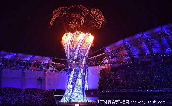 在精彩的文艺表演后,开幕式迎来最激动人心的时刻——点燃军运会圣火。在王皓、金泳德、王堂林、焦刘洋、杨珺菁、王霜依次传递后,军运会圣火交到最后一棒火炬手刘玉栋手中。