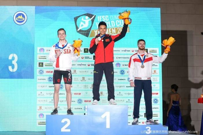 2019年10月19日,在中国厦门举行的IFSC世界杯攀岩赛速度攀岩项目决赛中,30岁的钟齐鑫击败了众多90后、00后对手,夺得冠军!
