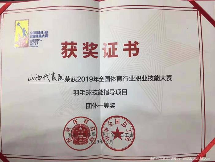 (山西代表队荣获羽毛球技能指导项目团体一等奖)