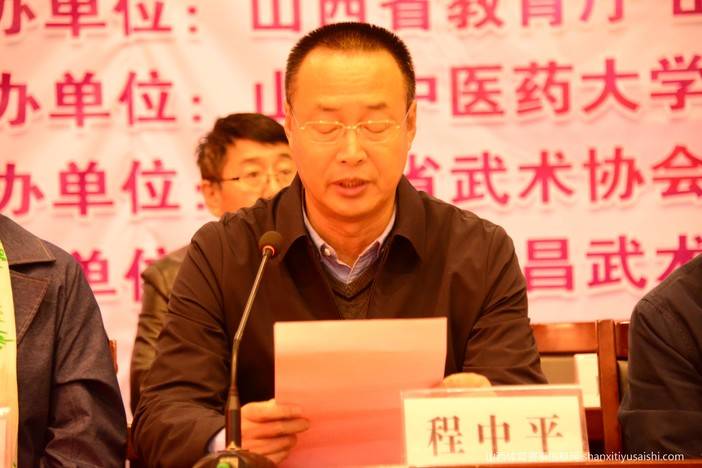 程中平致开幕词,他指出,举办全省学生武术锦标赛,是为了促进武术运动在全省青少年中的普及,进一步丰富和弘扬我省的传统武术文化,引导青少年学生养成良好的体育锻炼习惯。大力发展校园武术文化,是将我们优良的传统武术传承、传播、发扬光大的主要途径。希望每一位运动员、教练员都能肩负起传承中华武术的重任,将山西武术推向新的高度。