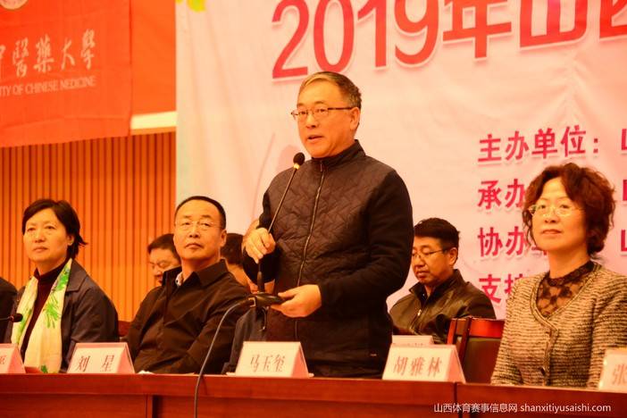 刘星在欢迎辞中指出,武术与中医都是中华民族传统文化宝库中的璀璨明珠。我校历来高度重视具有体医结合、承载着中华传统文化的武术和健身气功的普及推广和研究工作,连续13届承办了山西省学生武术锦标赛,先后多次组队参加国内的各类比赛和国外的交流教学。希望通过本次锦标赛,能增进彼此了解与友谊,共同弘扬中医养生运动,为全民健康做出积极贡献。