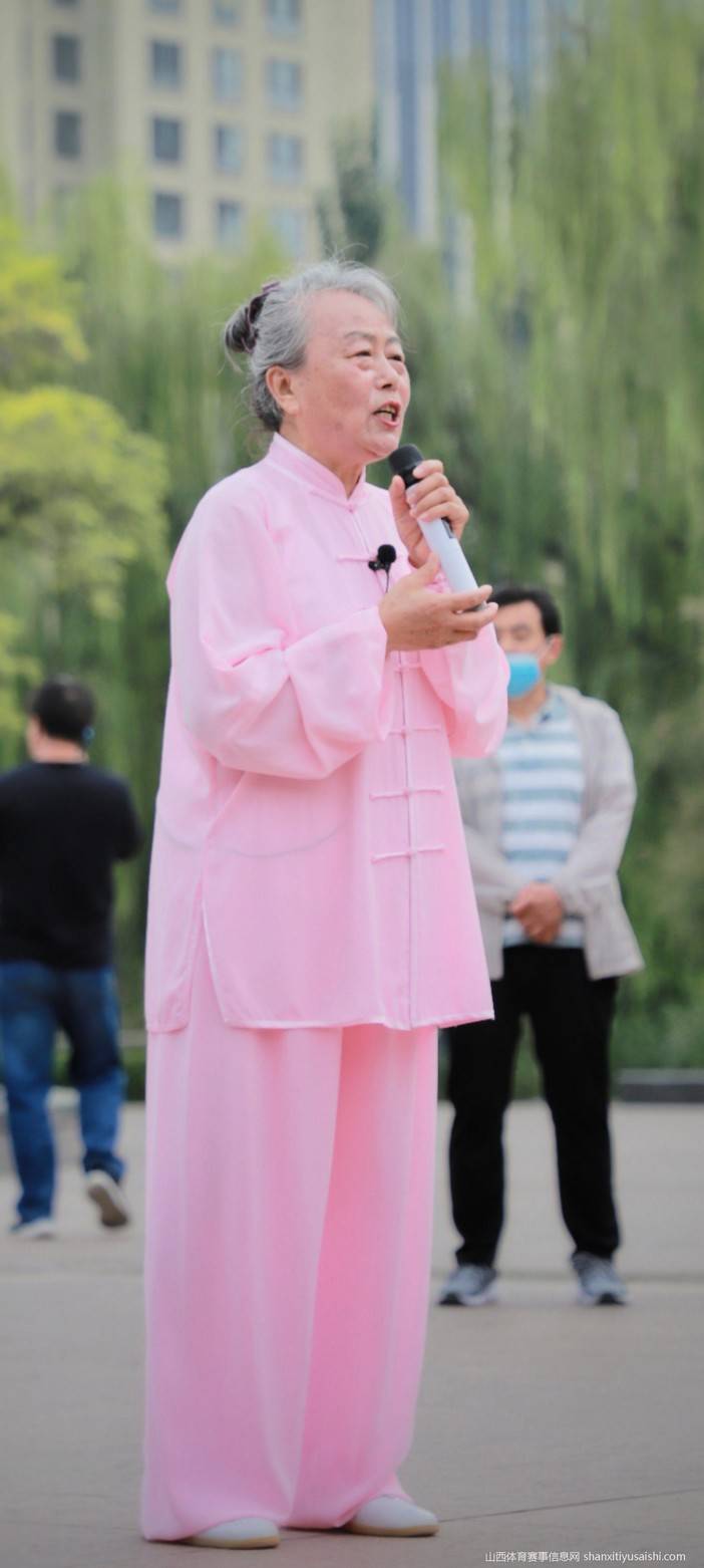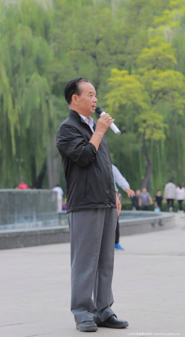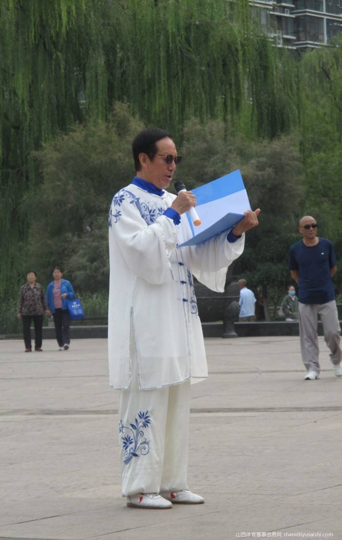 山西省杨氏太极拳协会副主席、太原市老年人体育协会太极拳专项工作委员会主任贾承平,主持太极拳专场活动开幕式并参与太极拳展演活动。