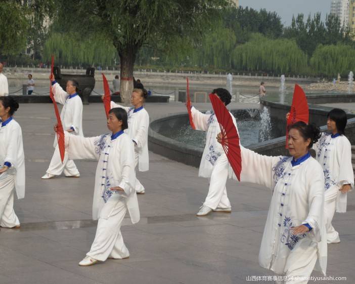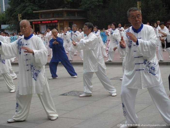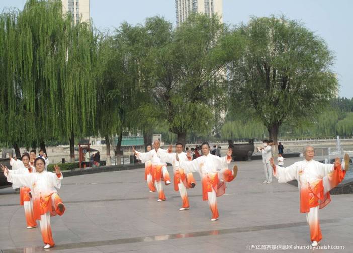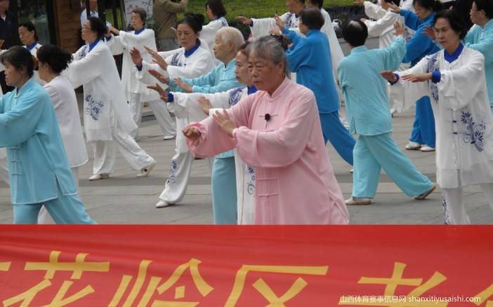 4、太原市老年体协太极拳专委会代表队展演了国家竞赛套路42式太极拳。