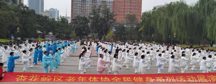 2020年9月13日,太原市杏花岭区老年体协太极拳专委会积极响应“全民健身动员起来”的号召,在龙潭公园春秋大鼎南广场举办了“杏花岭区老年体协全民健身系列活动”——太极拳专场展演。在太原市老年体协太极拳专项工作委员会主任贾承平的统一指挥下,辖区21个太极拳健身站近400名拳友积极参加了展示活动。其中太极拳、太极剑、太极刀、太极鞭、太极扇、剑扇同台的律动夕阳、文武结合的丝竹拌剑舞,别开生面,引人入胜。