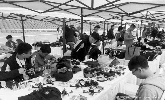 2、赛场外,选手们在仔细严查准备参赛的无人机等设备。