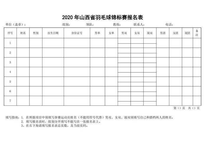 2020年山西省羽毛球锦标赛竞赛规程