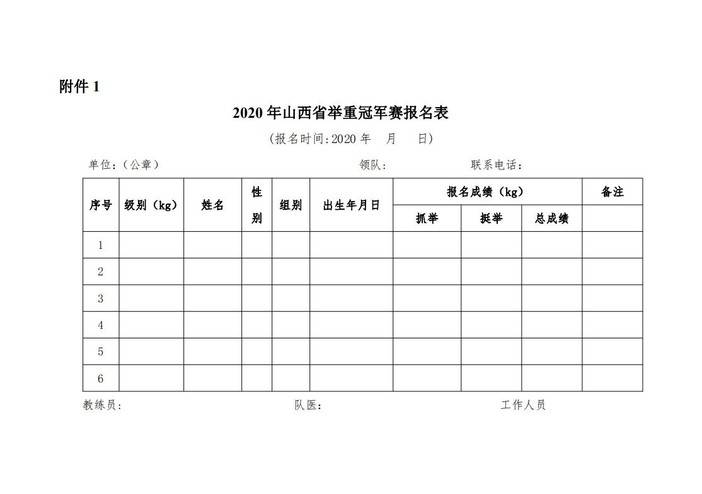 2020年山西省举重冠军赛竞赛规程