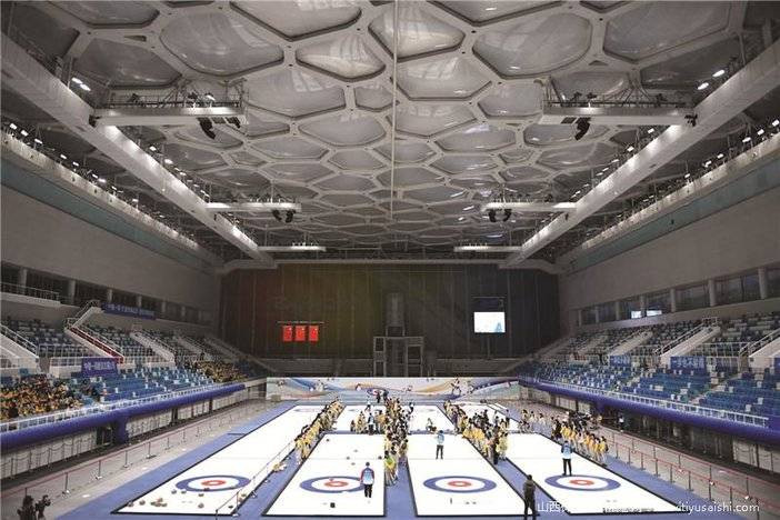 2020年12月21日拍摄的国家游泳中心奥林匹克比赛大厅的冰壶赛道。 新华社记者 张晨霖摄