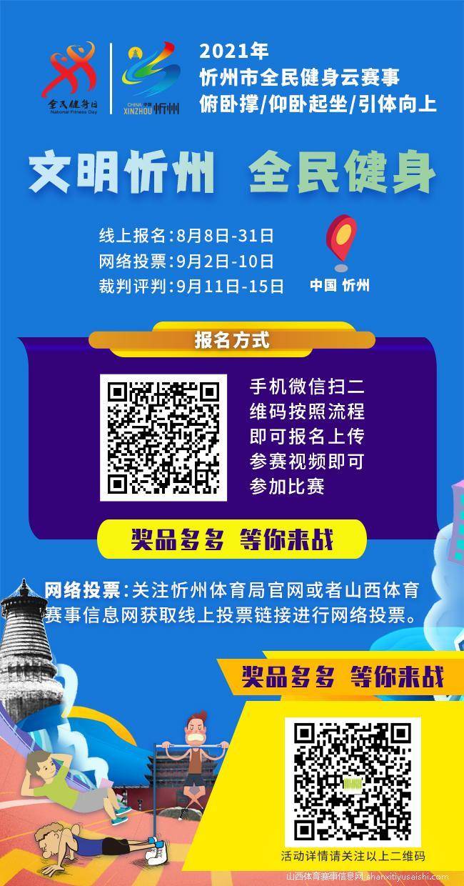 为贯彻习近平总书记关于体育工作的系列讲话和重要指示批示精神,落实市委、市政府决策部署,坚持以人民为中心的发展思想,提高人民群众身体素质,倡导健康向上的生活方式,8月8日,“文明忻州 全民健身”2021忻州市全民健身云赛事系列活动正式启动。