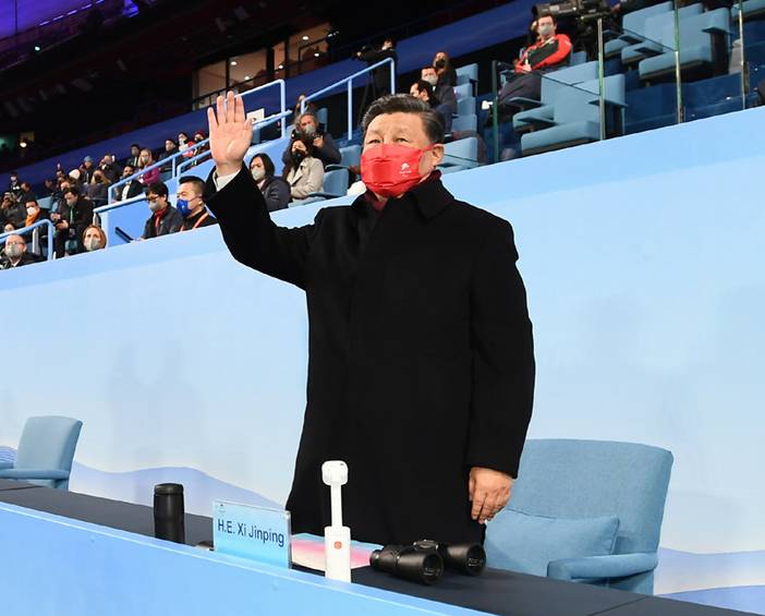 3月13日晚,北京2022年冬残奥会闭幕式在国家体育场隆重举行。这是国家主席习近平在主席台上向大家挥手致意。新华社记者 谢环驰 摄