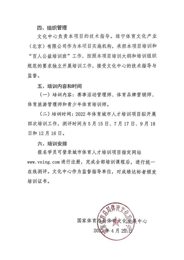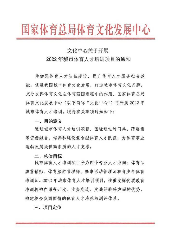 国家体育总局体育文化发展中心 关于开展2022年城市体育人才培训项目的通知