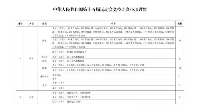 体育总局办公厅关于印发中华人民共和国第十五届运动会竞技比赛小项的通知如下: