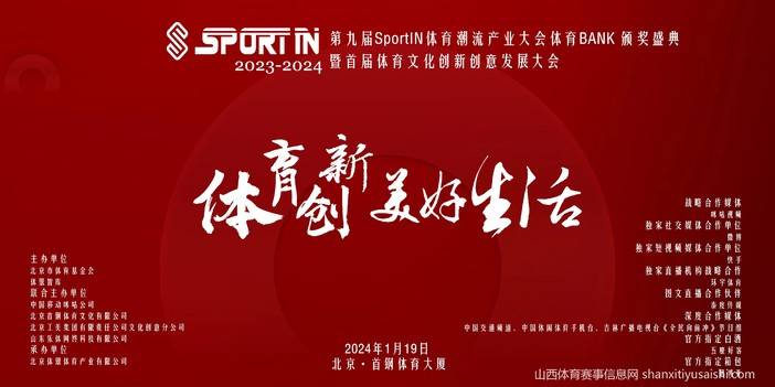 第九届SportIN体育潮流产业大会体育bank年度颁奖暨首届体育文化创新创意发展大会2024年1月19日在北京首钢体育大厦正式揭幕。主题:“体育创新美好生活”。