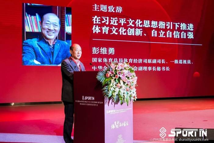 大会现场,国家体育总局体育经济司原副司长、一级巡视员、中华全国体育基金会副理事长秘书长彭维勇现场以“在习近平文化思想指引下推进体育文化创新、自立自信自强”为主题对此次大会的主题进行了升华。他指出体育文化是体育产业高质量发展的必然要求,也是体育产业走向高质量的一个重要标志,体育应以“人民”之意,创新创造性满足美好生活的需要,新时期我们要锚定“文化自信”, 培育中国特色体育文化创新创时代发展,并坚定体育文化自强,讲好中国体育发展的故事。