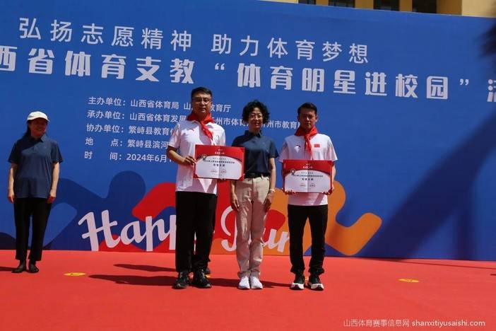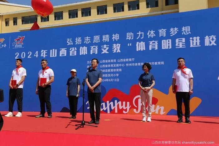 弘扬中华体育精神,培育中华体育文化。6月13日,2024年山西省体育支教“体育明星进校园”活动在繁峙县滨河小学举行。省体育局二级巡视员李润民宣布活动开始。省教育厅二级巡视员胡雅林、忻州市副市长贾玲香为体育明星颁发山西省“体育明星进校园”活动形象大使荣誉证书。省市县体育、教育部门,体育明星,学生、教师代表3500余人参加。