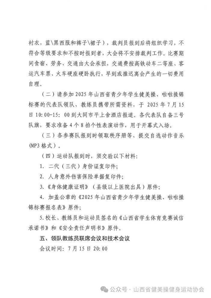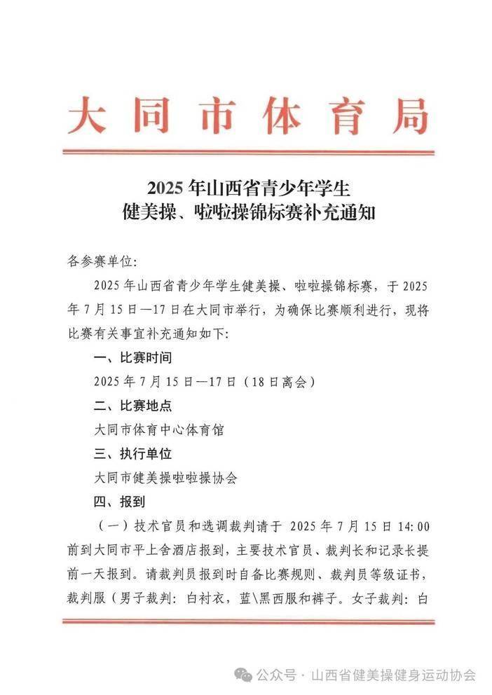 “奔跑吧·少年”2025年山西省青少年学生健美操、啦啦操锦标赛补充通知