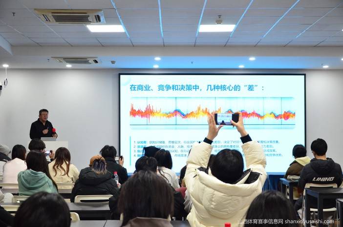 签约仪式后,专题讲座顺利开展。搏之美BOZHIMEI董事长王刚结合自身深耕体育产业多年的从业经验,以职业发展目标与路径规划、产业人才需求特点、体育赛事收益转化等为核心主题展开分享,并围绕“如何在体育产业中找准人生目标”与学生互动交流。他以挠羊赛等典型案例为切入点,从赛事服务升级、挠羊赛品牌文化塑造、文创产品(奖盘、奖牌、挠羊汉酒)研发与推广等方面,深入剖析了体育产业的发展机遇与挑战,重点引导学生思考如何将专业知识与实践场景结合,树立清晰的职业目标。分享结束后,现场设置互动提问环节,师生积极参与交流,进一步深化了对体育产业发展现状与趋势的认知,为个人职业规划积累了实用参考。