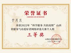2022年“科学健身 共抗疫情 ” 山西省健身气功爱好者网络评选大赛 证书下载