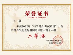 2022年“科学健身 共抗疫情 ” 山西省健身气功爱好者网络评选大赛 证书下载