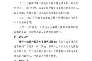 2023 年山西省武术套路裁判培训班暨二级晋升一级裁判认证考核报名 [复制链接]