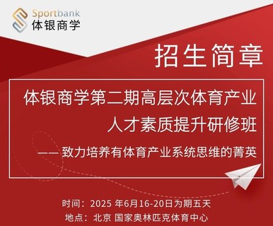 面对体育产业的快速发展与多元化挑战,如何系统提升专业素养,把握行业前沿趋势?体银商学第二期高层次体育产业人才素质提升研修班将于2025年6月16-20日在北京国家奥林匹克体育中心举办。