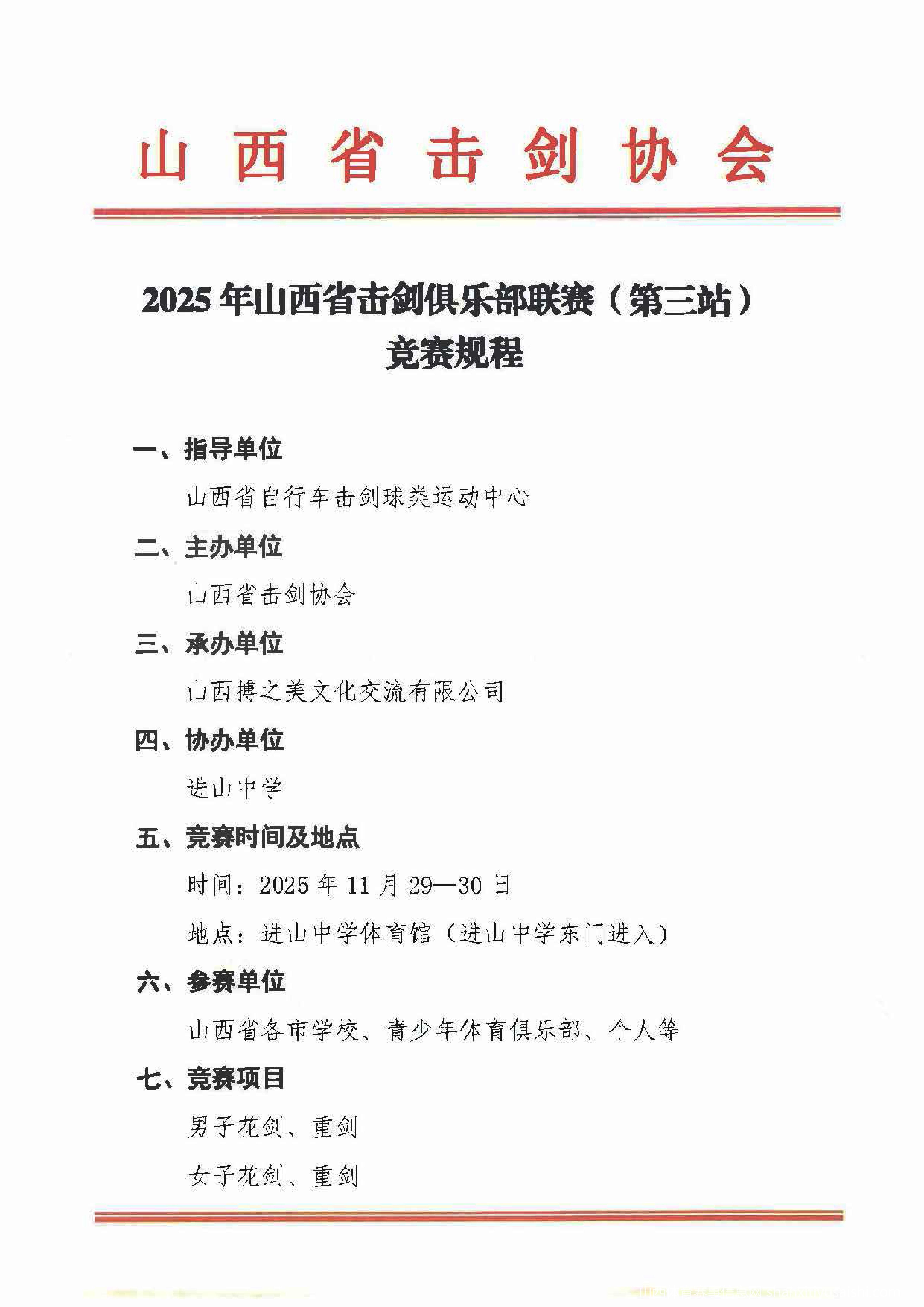 2025年山西省击剑俱乐部联赛(第三站)
