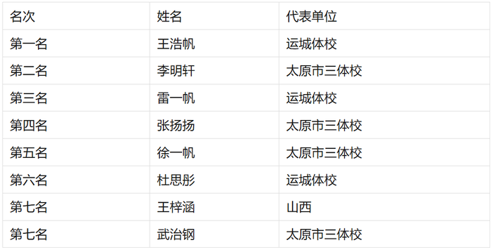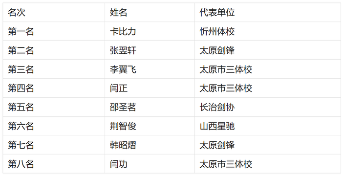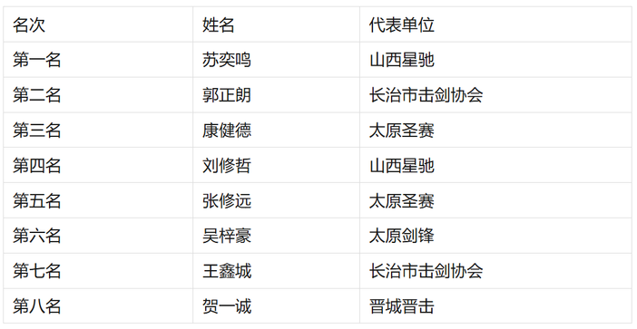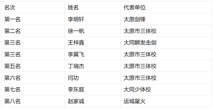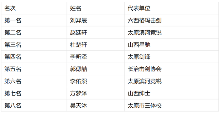 U10男子重剑个人年度前八名