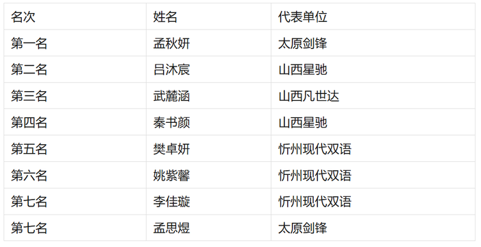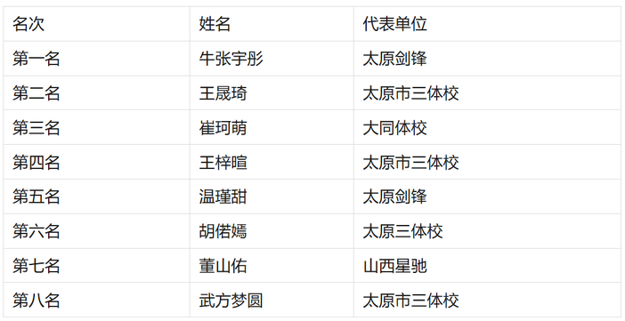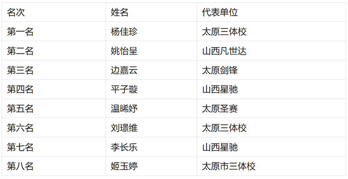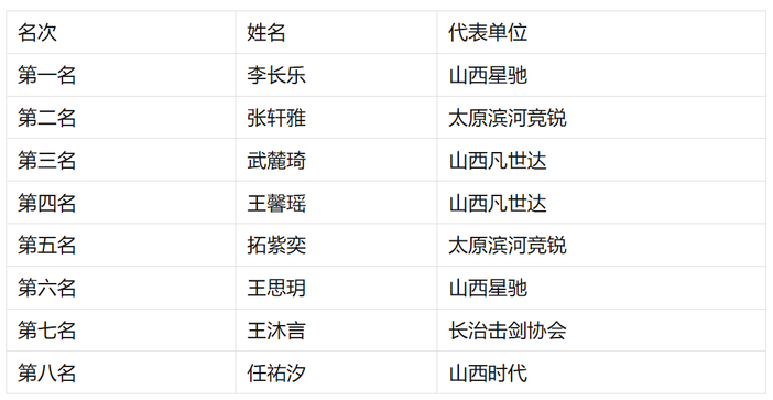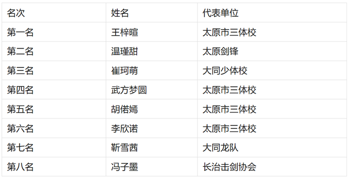 U10女子重剑个人年度前八名